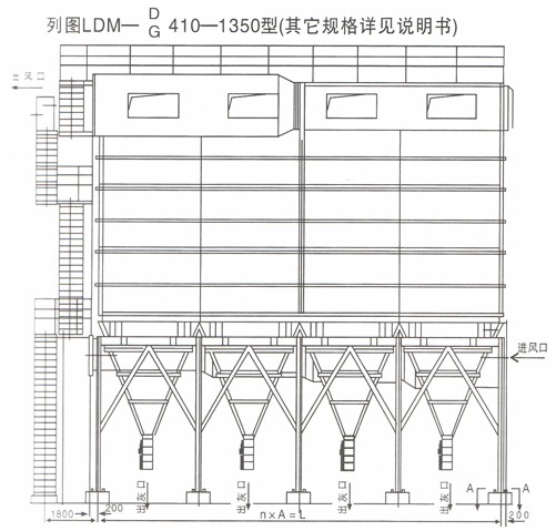 LCM-D/G型系列长袋离线脉冲除尘器/长袋除尘器外形尺寸: